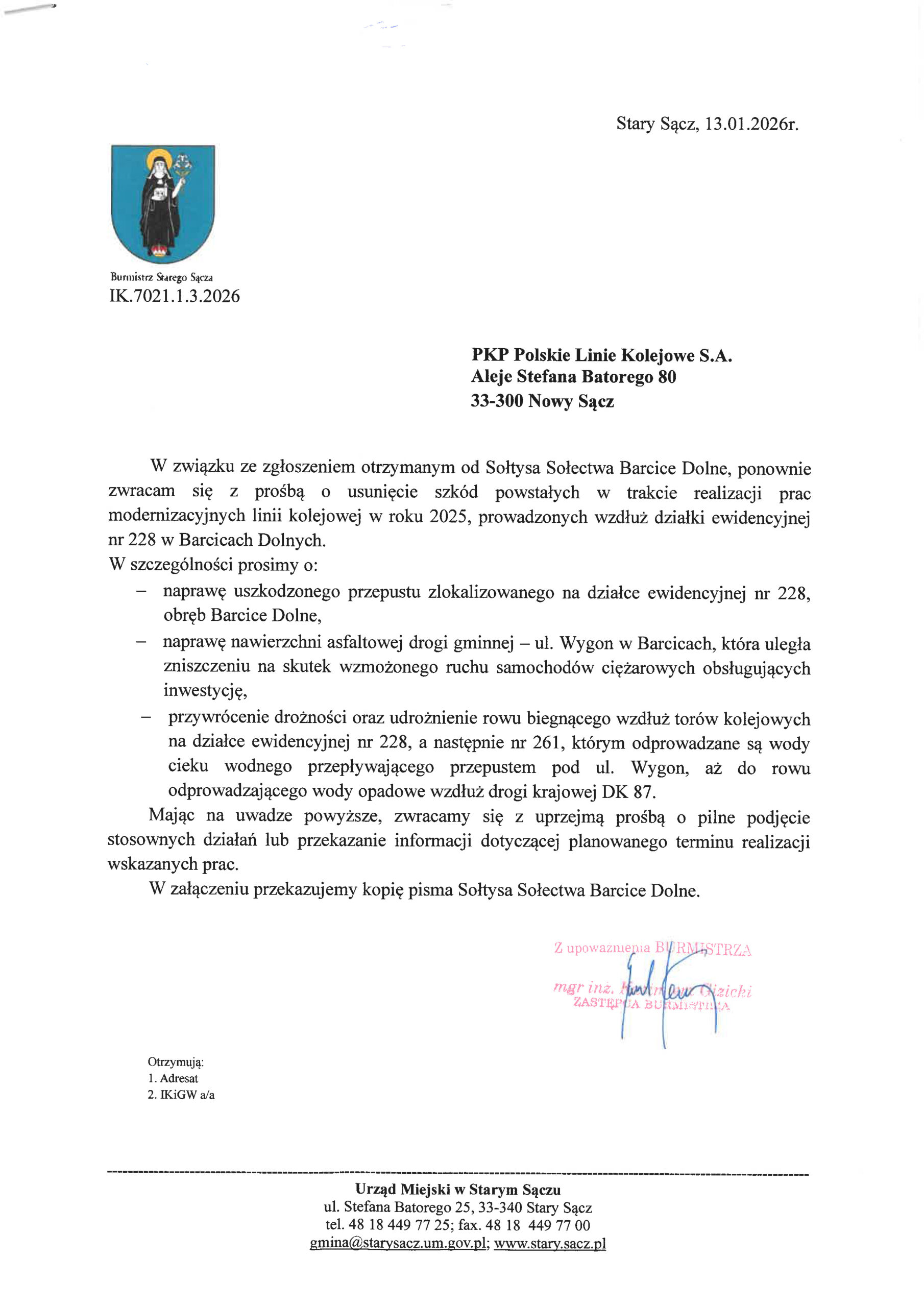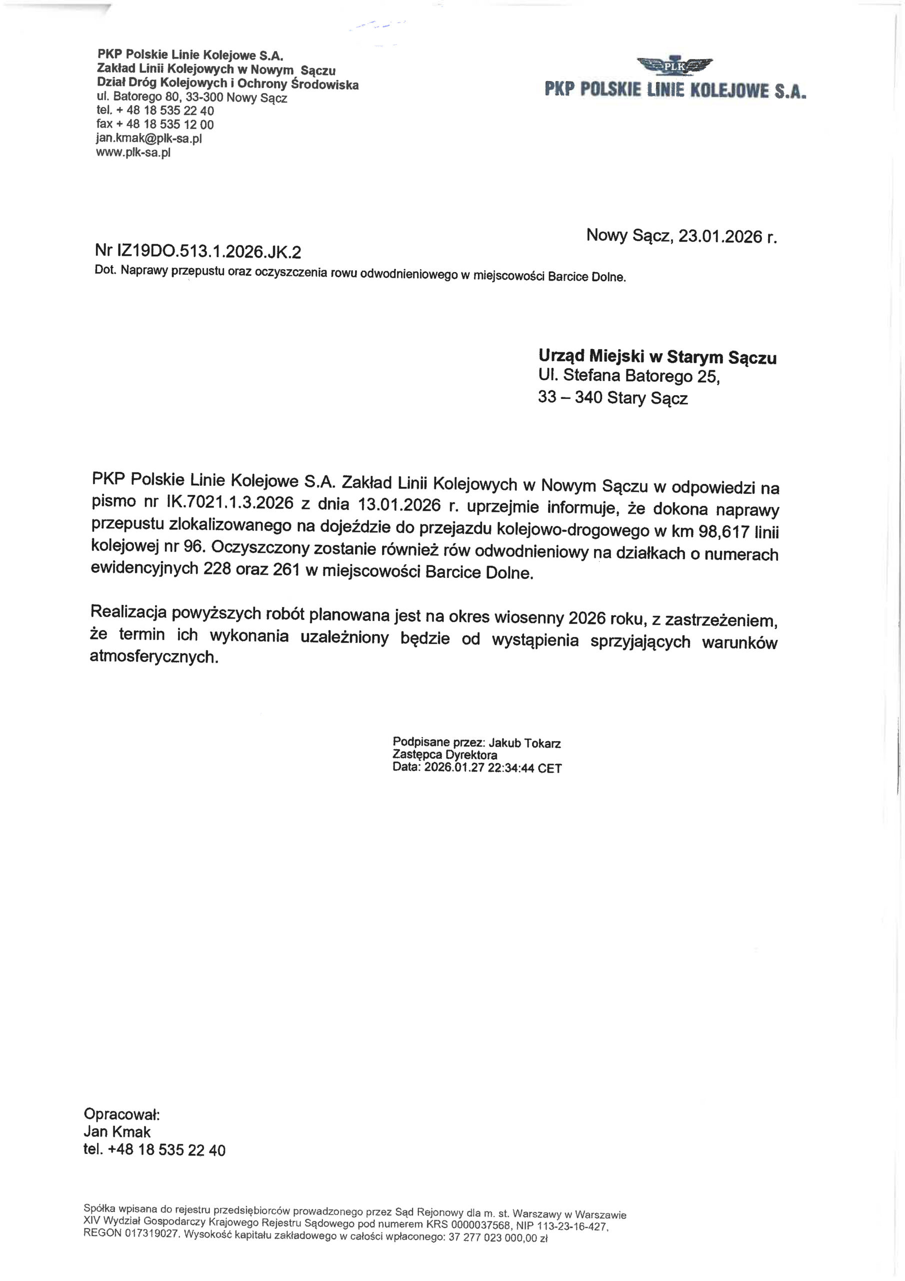 23 stycznia 2026 r. otrzymałem pismo napawające optymizmem w tej sprawie (skan poniżej).