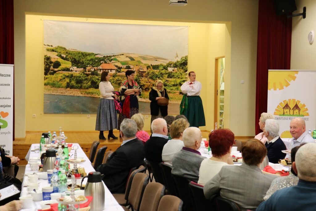 Seniorzy mieli okazję nie tylko obejrzeć artystyczne występy, ale także skosztować specjałów przygotowanych przez panie ze Stowarzyszenia. Z pewnością największą wartością była możliwość wspólnego biesiadowania, rozmów i wspominania dawnych czasów.