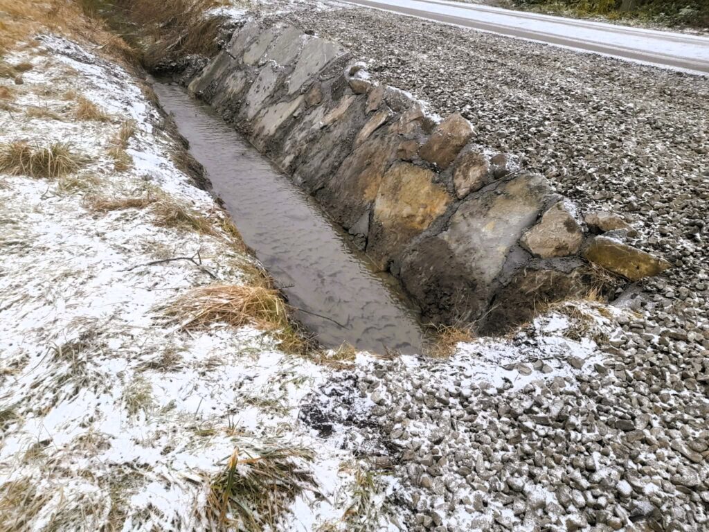 Prace zostały wykonane na najbardziej zdewastowanym odcinku ok. 60 m, polegały m.in. na umocnieniu brzegu cieku wodnego głazami kamiennymi, wykonaniem wypełnienia betonowego, uzupełnieniu dziur wzdłuż jezdni, wyżwirowaniem pobocza.
